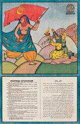 Les bolchéviks faisaient de la propagande adressée aux populations musulmanes de l'ancien empire tsariste (Affiche de 1921)